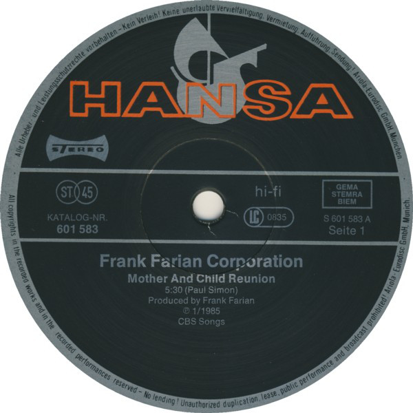 Frank Farian Corporation – Mother And Child Reunion (12″, Maxi)