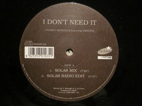 Frank ‘O Moiraghi – I Don’t Need It (12″)