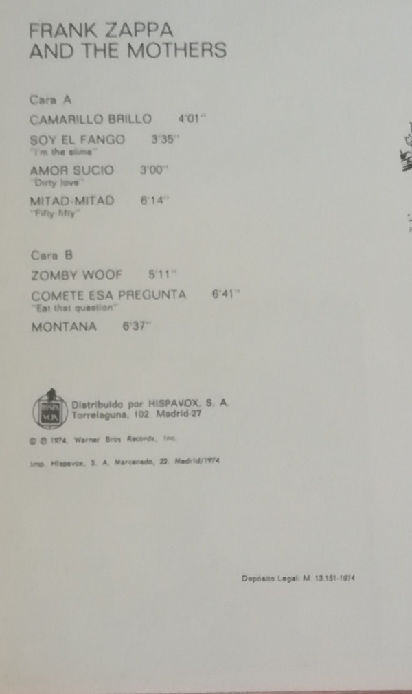 Frank Zappa And The Mothers – Over-Nite Sensation (LP, Album, RE, Cen)