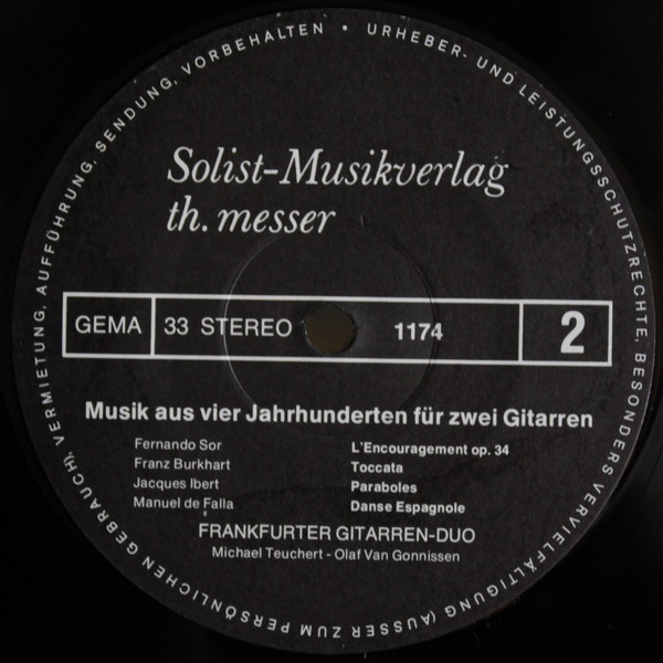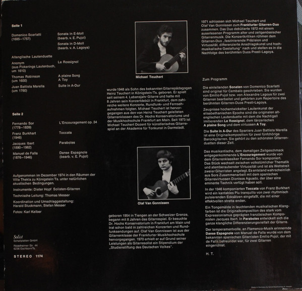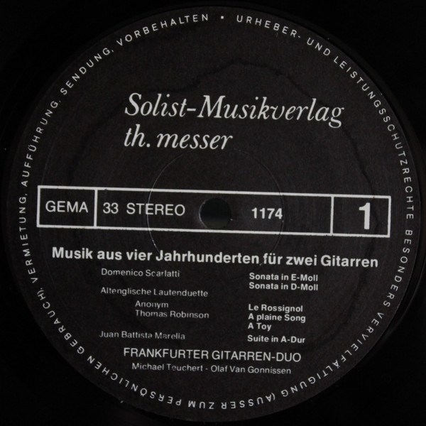 Frankfurter Gitarren Duo – Musik Aus Vier Jahrhunderten Für Zwei Gitarren (LP, Album)