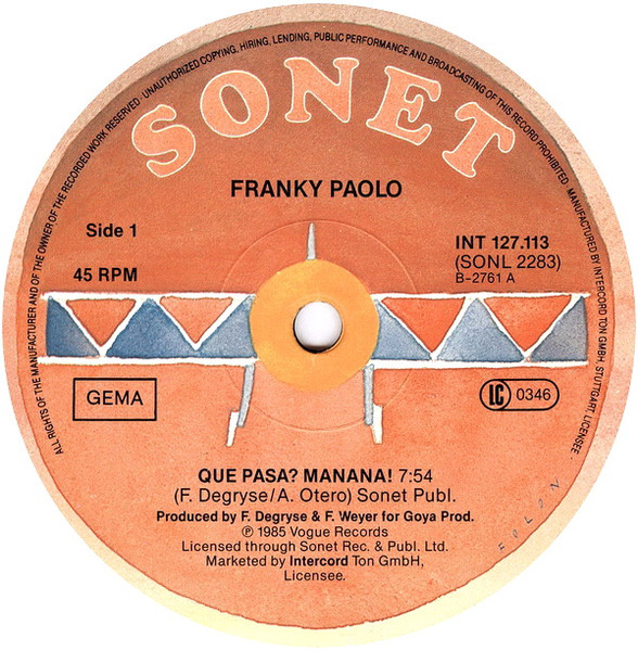 Franky Paolo – Que Pasa? Manana! (12″, Maxi)