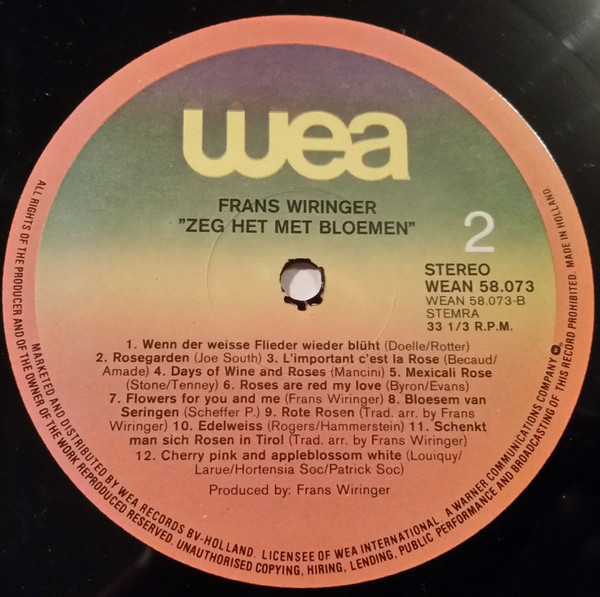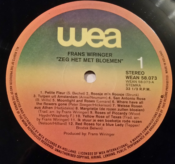Frans Wiringer – Zeg Het Met Bloemen (24 Beroemde Bloemenmelodieën) (LP)