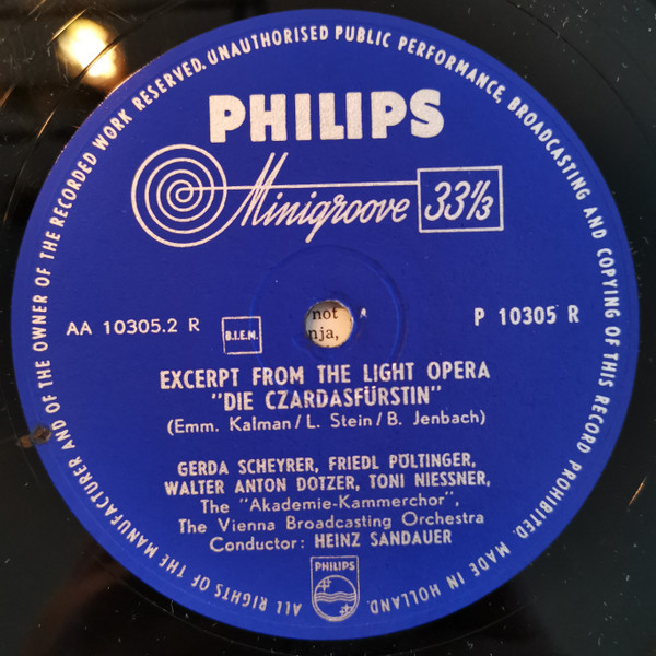 Franz Lehár / Emmerich Kálmán – Gerda Scheyrer, Friedl Pöltinger, Walter-Anton Dotzer, Toni Niessner, Wiener Akademie Kammerchor, Das Große Wiener Rundfunkorchester, Heinz Sandauer – Der Zarewitsch / Die Czardasfürstin (Operettenquerschnitte) (10″)