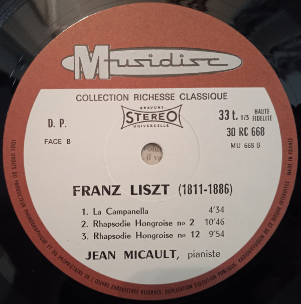 Franz Liszt – Jean Micault – La Campanella / Fantaisie Sur Don Juan / Rhapsodies Hongroises (LP)