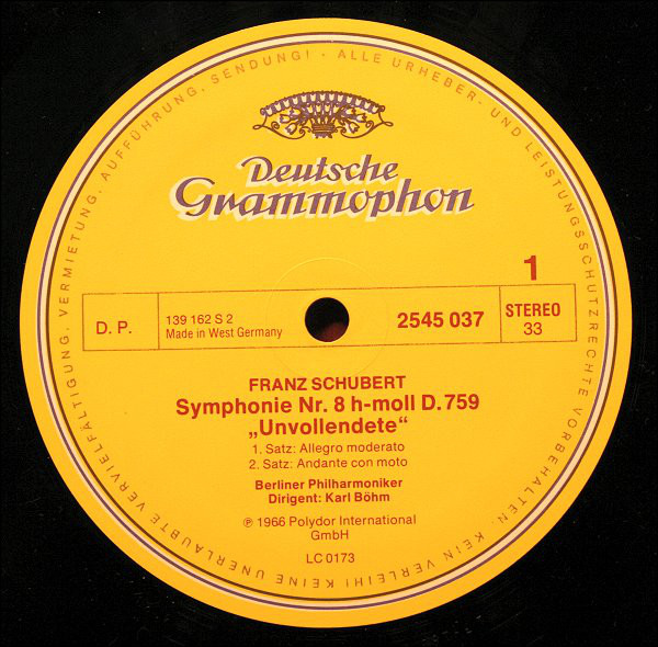 Franz Schubert – Berliner Philharmoniker, Karl Böhm – Symphonie Nr. 8 H-moll »Unvollendete« • Musik Zu Rosamunde (LP, Comp)