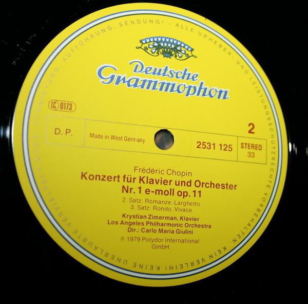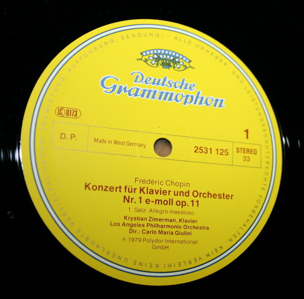 Frédéric Chopin . Los Angeles Philharmonic Orchestra . Krystian Zimerman . Carlo Maria Giulini – Klavierkonzert • Piano Concerto No. 1 (LP, Album)