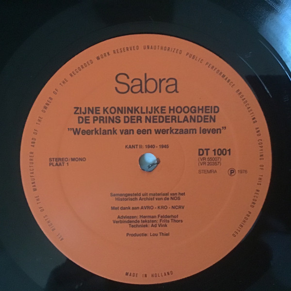 Frits Thors – Zijne koninklijke hoogheid de Prins der Nederlanden: weerklank van een werkzaam leven (LP)
