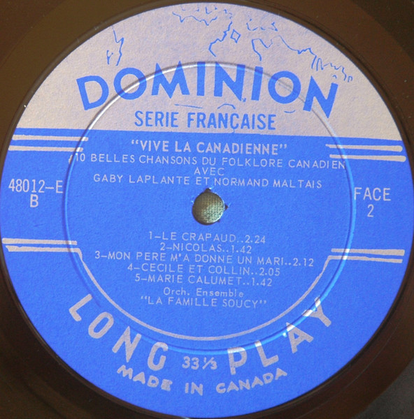 Gaby Laplante Et Normand Maltais – Vive La Canadienne – 10 Belles Chansons Du Folklore Canadien (LP, Album, Mono)