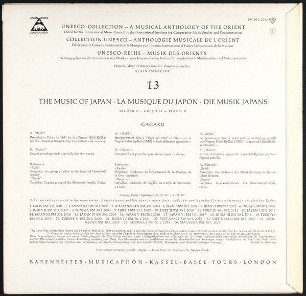 Gagaku Shigenkai / Garyōkai – Japan II (LP, Album, Mono)