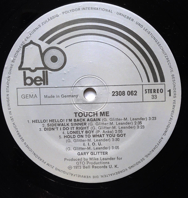 Gary Glitter – Touch Me (LP, Album, Gat)