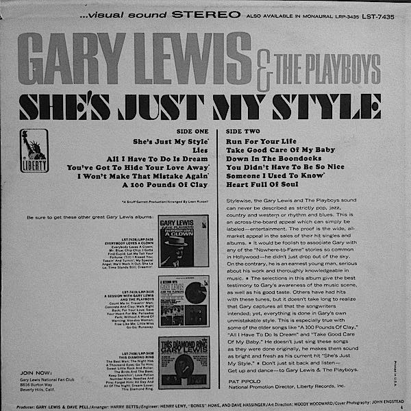Gary Lewis & The Playboys – She’s Just My Style (LP, Album, San)