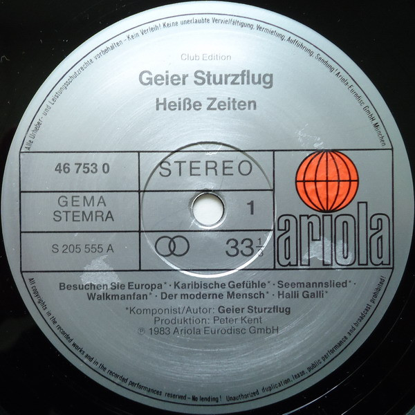 Geier Sturzflug – Heiße Zeiten… (LP, Album, Clu)