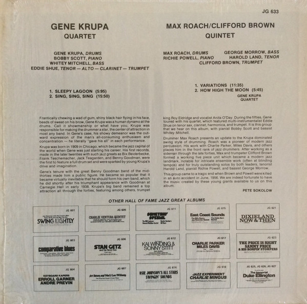 Gene Krupa Quartet* / Max Roach/Clifford Brown Quintet* – Hall Of Fame – Jazz Greats (LP, Album)