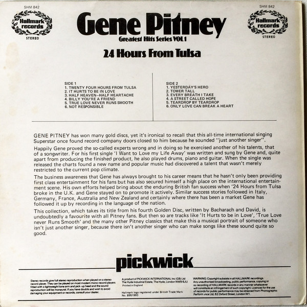 Gene Pitney – 24 Hours From Tulsa (Greatest Hits Series Vol.1) (LP, Comp, Blu)