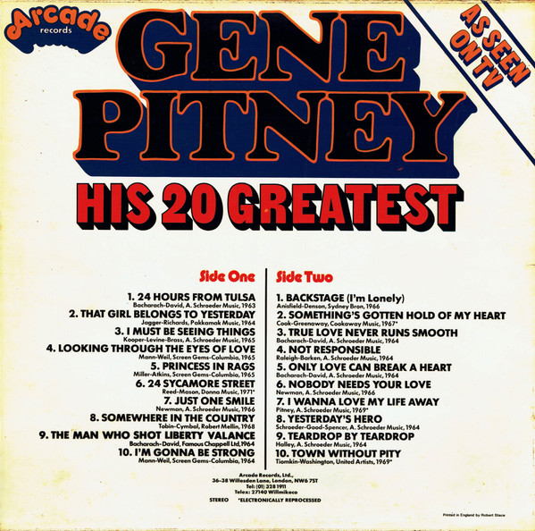 Gene Pitney – His 20 Greatest (LP, Comp, RM, Orl)