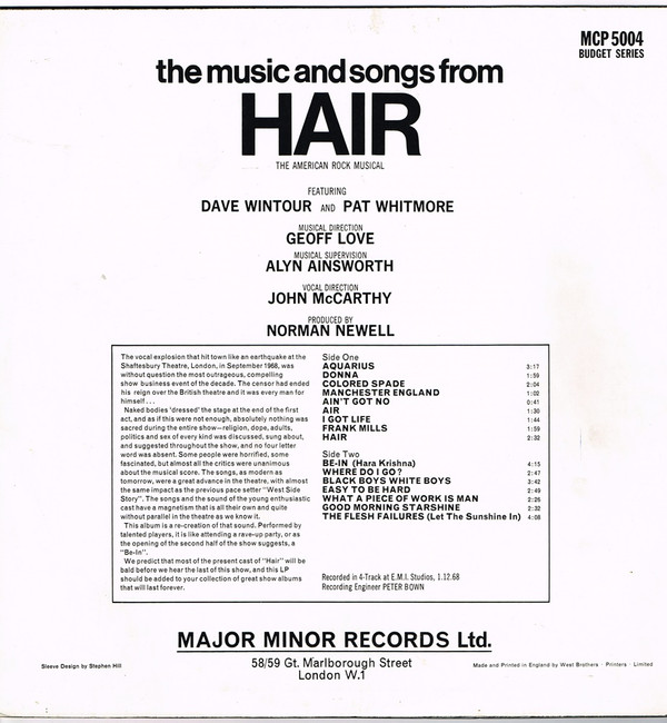 Geoff Love Featuring Dave Wintour And Pat Whitmore – The Music And Songs From Hair (LP, Album)