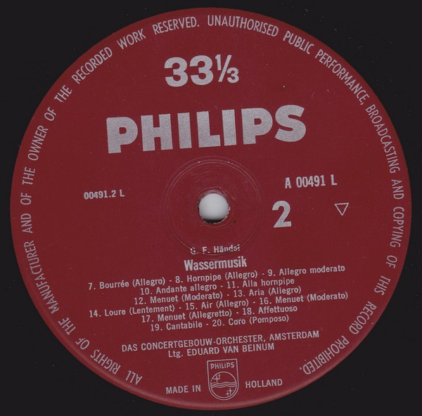 Georg Friedrich Händel – The Concertgebouworkest – Eduard van Beinum – Water Music Complete (LP, Mono)