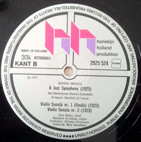 George Antheil – Ballet Mécanique – A Jazz Symphony – Violin Sonata 1 & 2 (LP)