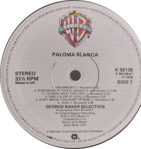 George Baker Selection – Paloma Blanca (LP, Album, Gat)
