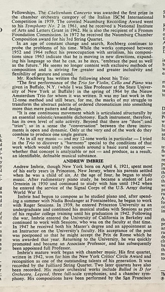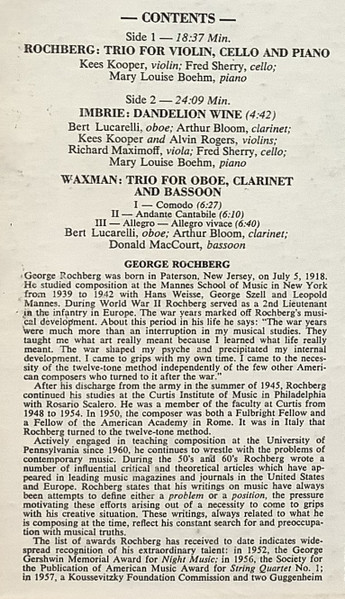 George Rochberg / Andrew Imbrie / Donald Waxman – Trio For Violin, Cello And Piano / Dandelion Wine / Trio For Oboe Clarinet And Bassoon (LP)