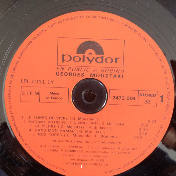 Georges Moustaki – Bobino 70 (LP, Album, RE, Gat)