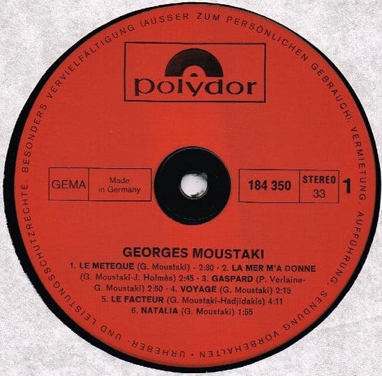 Georges Moustaki – Georges Moustaki (LP, Album, RE, Gat)