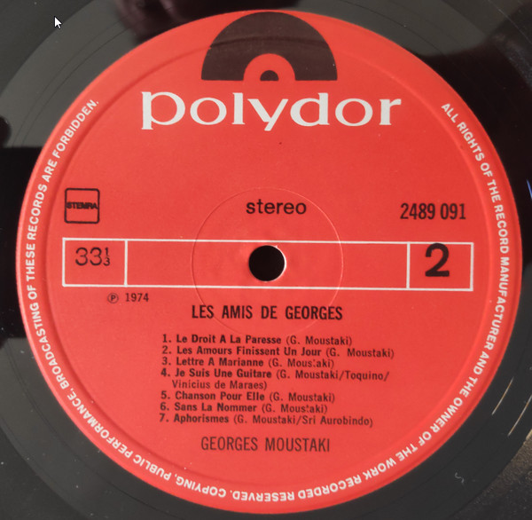 Georges Moustaki – Les Amis De Georges (LP, Album, RE, Gat)