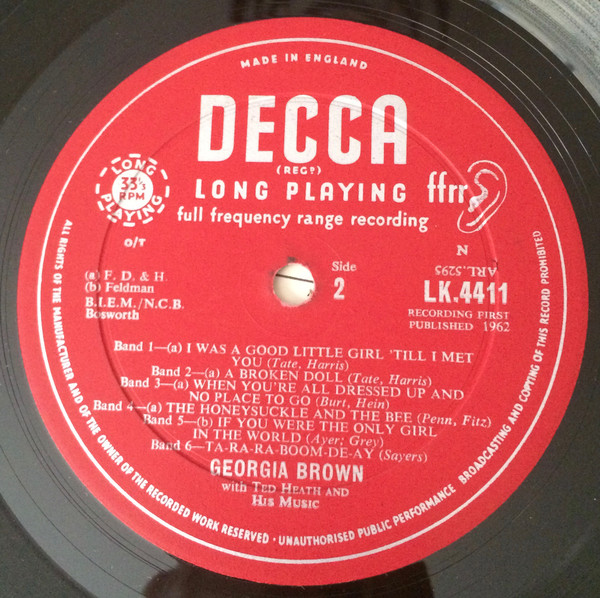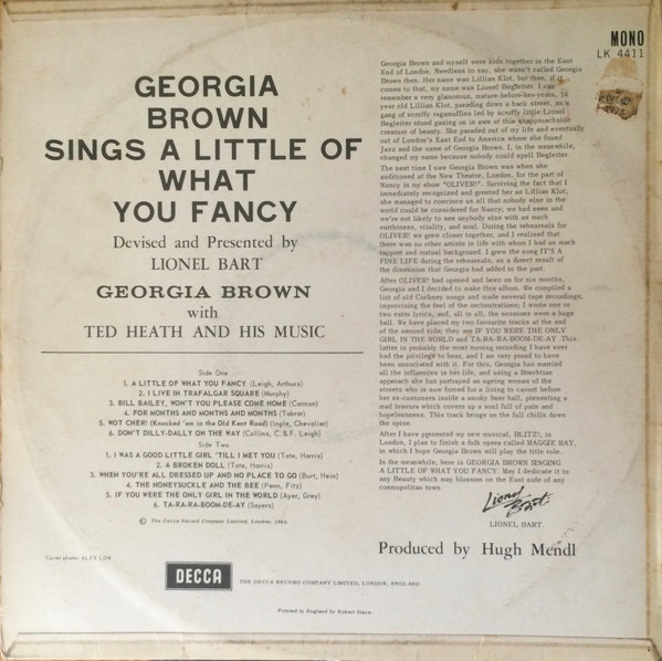 Georgia Brown With Ted Heath And His Music – Sings A Little Of What You Fancy (LP, Album, Mono)