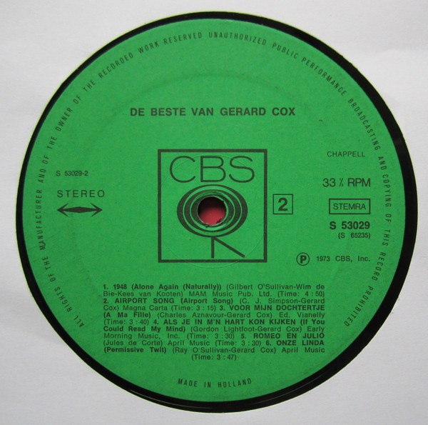 Gerard Cox – De Beste Van Gerard Cox (LP, Comp)