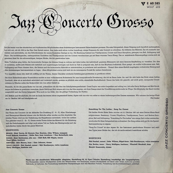 Gerry Mulligan, Bob Brookmeyer, Phil Sunkel – Play Phil Sunkel’s Jazz Concerto Grosso (10″, Gat)