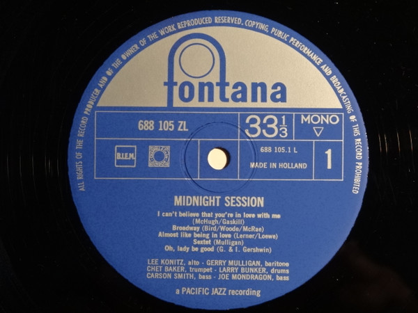 Gerry Mulligan Featuring Lee Konitz & Chet Baker – Midnight Session (LP, Album, Mono)