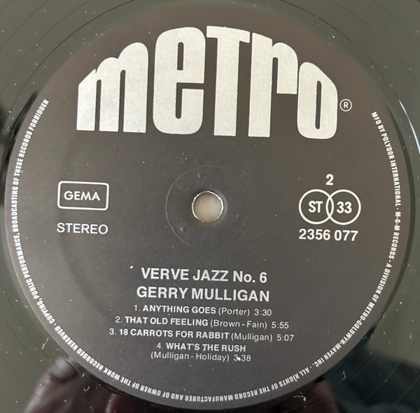 Gerry Mulligan With Ben Webster, Stan Getz, Paul Desmond & Johnny Hodges – Verve Jazz No. 6 (LP, Comp)