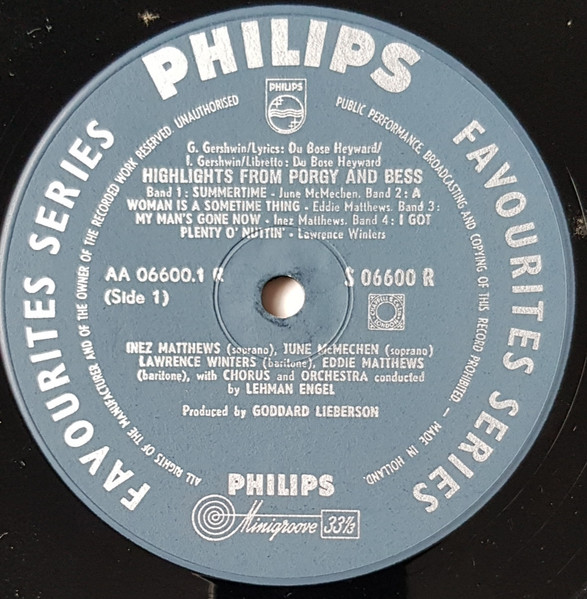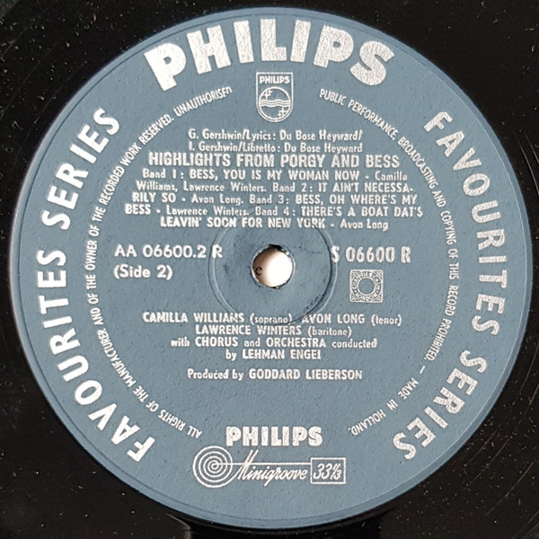Gershwin* – Camilla Williams, Lawrence Winters – Porgy And Bess (10″)