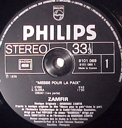 Gheorghe Zamfir – Messe Pour La Paix (LP, Album, Fol)