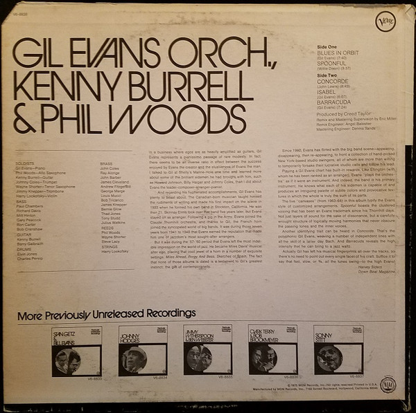 Gil Evans And His Orchestra, Kenny Burrell & Phil Woods – Previously Unreleased Recordings (LP, Album)