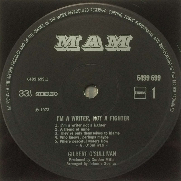 Gilbert O’Sullivan – I’m A Writer, Not A Fighter (LP, Album)