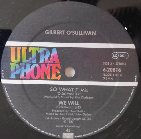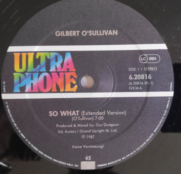 Gilbert O’Sullivan – So What (12″, Maxi)