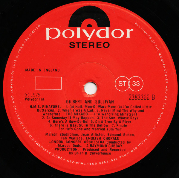 Gilbert & Sullivan – London Concert Orchestra Conducted By Marcus Dods / Marion Studholme / Jean Allister / Edmund Bohan / Ian Wallace (3) / The English Chorale – A Gilbert & Sullivan Spectacular (LP, Album)