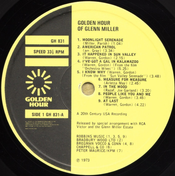 Glenn Miller – Golden Hour Of Glenn Miller (LP, Comp)