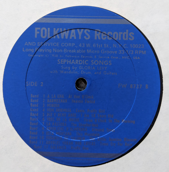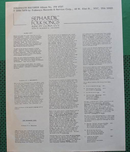 Gloria Levy – Sephardic Folk Songs (LP, Album, RE)