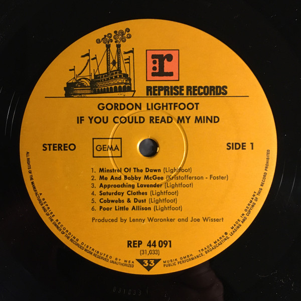 Gordon Lightfoot – If You Could Read My Mind (LP, Album, RE)