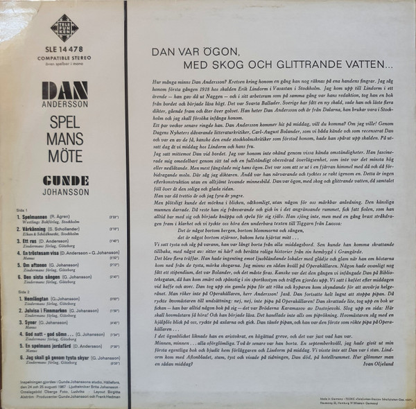 Gunde Johansson, Dan Andersson – Spelmansmöte (LP, Album)