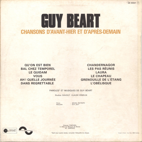 Guy Béart – Chansons D’Avant-hier Et D’Après-demain (LP, Album, RE)