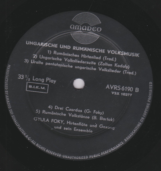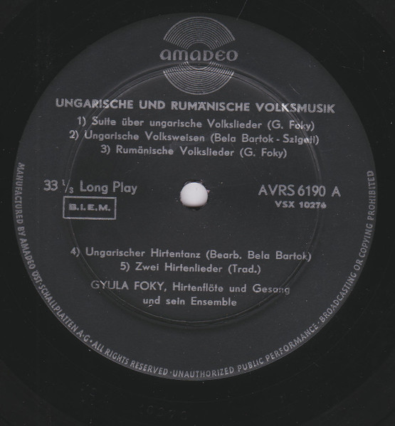 Gyula Foky-Gruber – Ungarische Volks Und Hirtenlieder (LP, Album)