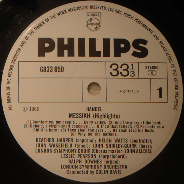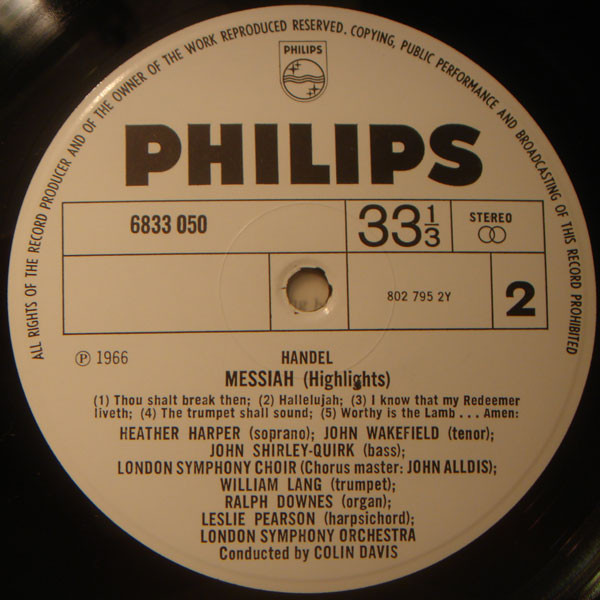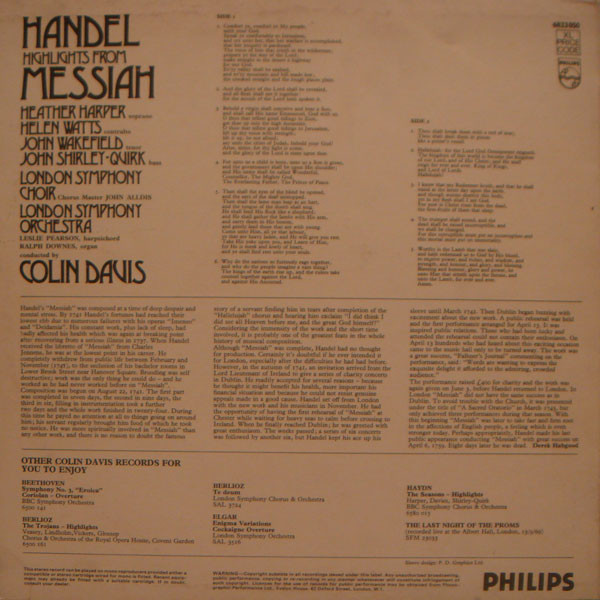 Handel* / Heather Harper / Helen Watts / John Wakefield / John Shirley-Quirk / London Symphony Choir* / London Symphony Orchestra / Colin Davis* – Highlights From Messiah (LP)