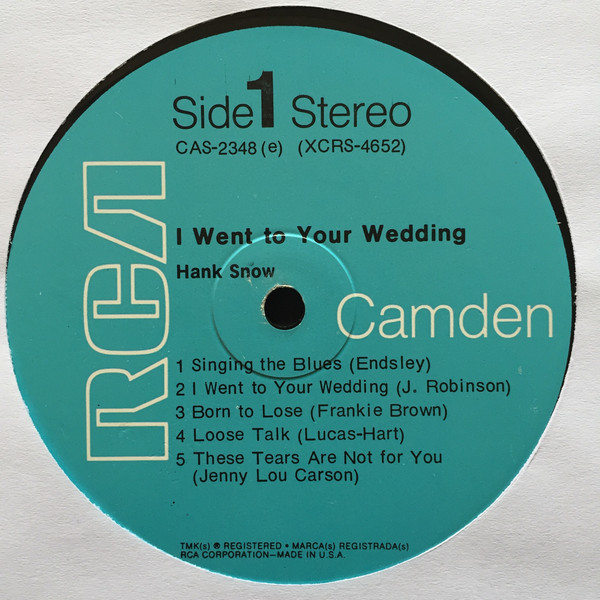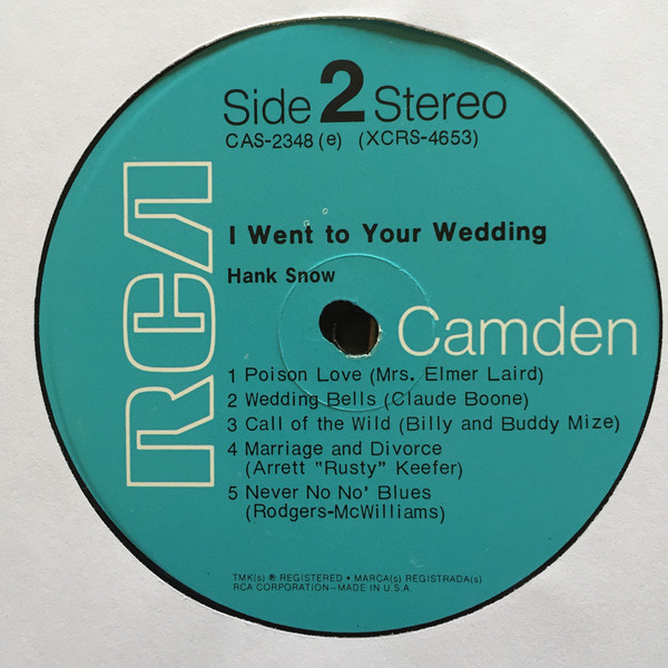 Hank Snow – I Went To Your Wedding (LP, Album, Roc)