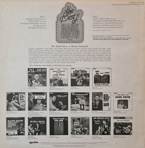Hank Snow – The Best Of Hank Snow, Vol. II (LP, Comp)