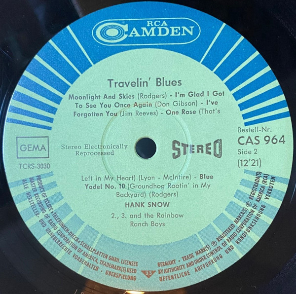 Hank Snow – Travelin’ Blues (LP, Album)