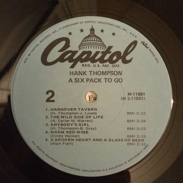 Hank Thompson And His Brazos Valley Boys – A Six Pack To Go (LP, Album, Mono, Rei)