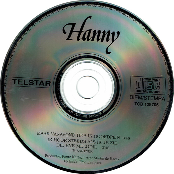 Hanny (2) – Maar Vanavond Heb Ik Hoofdpijn (CD, Single)